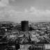 A gas holder dominates the skyline of the industrial part of Downtown.
