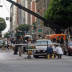 Interior, exterior dialogue. Occasional traffic & pedestrian control. Camera and equipment on sidewalk, in curblane & across the street. Driving scenes. Wetting down of the streets. Large equipment. Lights and elephants.