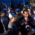 One month ago, Mayor Antonio Villaraigosa and Councilmembers Wendy Greuel and Ed Reyes talk to the media after getting off the first Dodger Trolley bus from Union Station to Dodger Stadium.