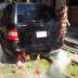 DOWNTOWN LOS ANGELES — Thick smoke pours out of a cartoonishly gigantic exhaust pipe sticking out of a Mercedes SUV on the corner of 7th and Flower, where landscape architecture firm has set up their Park(ing) Day LA park.