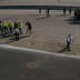 Contractors hired by the Corp of Engineers began removing the giant tag, with funding provided under the federal stimulus package. Councilmen Jose Huizar and Ed Reyes got to take the first strokes. Both have been active in efforts to revitalize the Los Angeles River.
