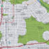1,000 FOOT BUFFER: This map of Downtown shows areas that are 1,000 feet or more from residential uses in green. Council is considering where to allow medical marijuana dispensaries, and distance from residential uses is one factor.