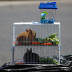 Cages containing rabbits and turtles sit in the sun near 11th and Maple in August of 2009.