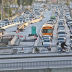 A cyclist rides on the sidewalk while crossing the 110 freeway on 7th Street in 2010. This year, bike lanes were installed on the street west of Figueroa.