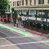 The new Spring Street bicycle lane next to the Alexandria at 5th and Spring. The lane runs from Cesar Chavez to 9th.