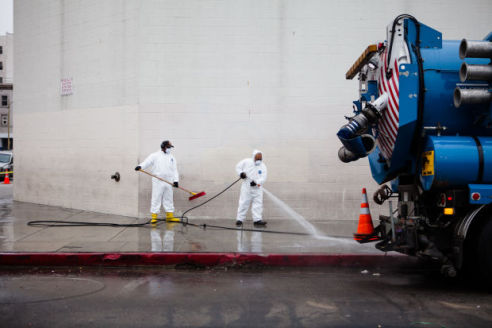 The streets and sidewalks are disinfected with water and bleach and then sprayed a last time with water. Street Services workers sweep the streets to complete the cleanup, Vargas said.