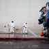 Sanitation workers begin the cleanup by inspecting the street for any hazardous materials like syringes, hypodermic needles and materials containing feces, urine or blood.