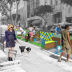 Both designs clearly emphasize the community impact that is intended for these parklets. The first design includes a foosball table and is filled with young, hip-looking Downtown residents walking their dogs and talking with friends. The second, which includes more seating options, highlights young kids eating ice cream and a mother with her children.