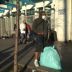 Desmond Williams wearing a protective mask on Skid Row last month. Many area residents and employees say it's been "business as usual" for them since the TB outbreak -- besides all the media attention.