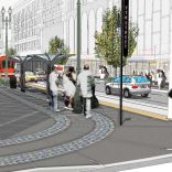 A rendering of the new Broadway shows less lanes of traffic and more pedestrian space.
